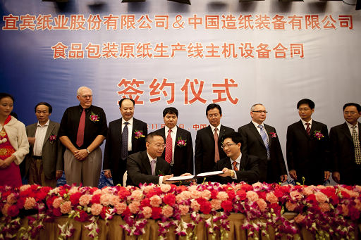 陈鄂生董事长出席中国造纸装备公司宜宾纸业食品包装原纸生产线主机设备合同签约仪式