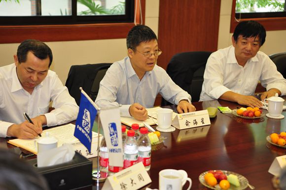 在海诚股份,俞海星听取了公司2014年度和近期生产经营情况汇报,就资金平台建设等问题进行了深入交流。俞海星高度肯定海诚股份2014年度经营业绩完成情况,勉励领导班子要再接再厉,努力克服经济下行压力加大、市场环境严峻、订单减少等困难,实现海诚股份持续稳定健康发展。一是要持续关注公司的成长性、稳健性和风险控制,保持收入和利润的稳定增长,提高内部控制的规范性和有效性。二是提高经营效率,推进文化融合和资源统筹,同时加强专业化经营,减少内部无序竞争。三是充分发挥上市公司作用,利用好资本市场,加速公司发展。