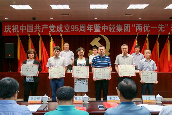 7月1日,中轻集团党委在中轻大厦召开庆祝中国共产党成立95周年暨中轻集团“两优一先”表彰大会,表彰中轻集团先进基层党组织5个、优秀共产党员和优秀党务工作者28名。中轻集团党委书记、董事长陈鄂生出席会议并作重要讲话,中轻集团总经理、党委副书记俞海星主持会议。中轻集团受表彰先进基层党组织、优秀共产党员和优秀党务工作者代表,集团党委委员、纪委委员、中层以上党员干部,在京直属企业和海诚股份在京子企业党委书记、党办主任共60人参加了会议。