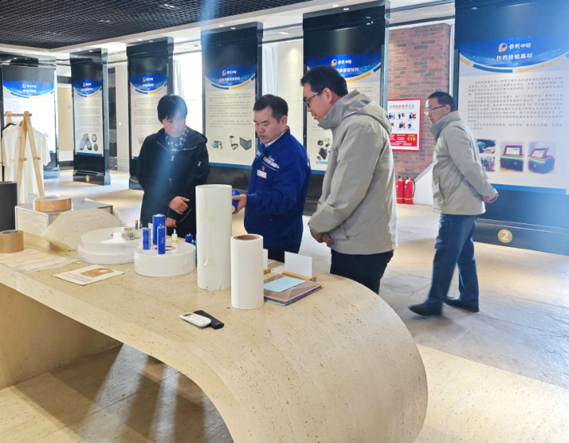 赵昌林一行参观了中轻特材创新成果展示中心,全面了解了中轻特材的产业规划布局、主要产品及其应用领域。 在随后的座谈中,双方围绕隔热材料、生物基隔膜材料的应用现状与发展前景展开深入交流,并探讨了未来合作方向,为下一步合作奠定了良好基础。