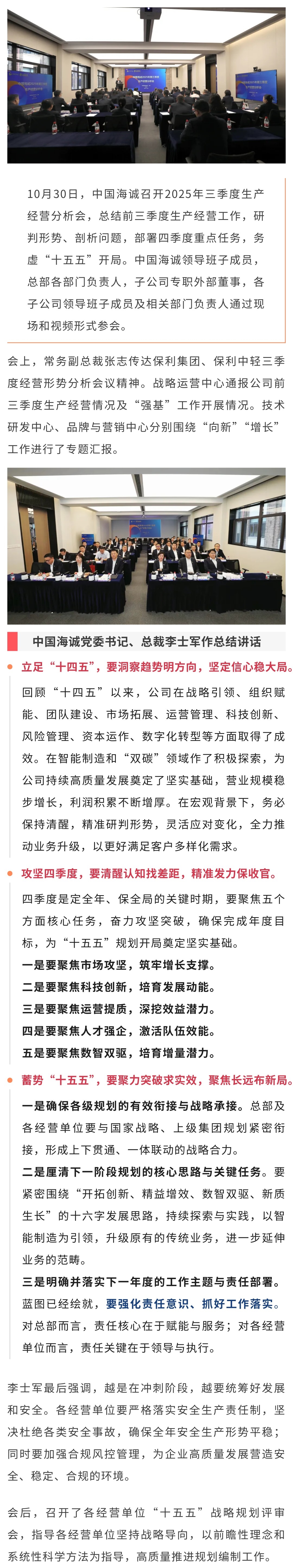 向新而行 蓄势攀高|中国海诚召开2025年三季度生产经营分析会